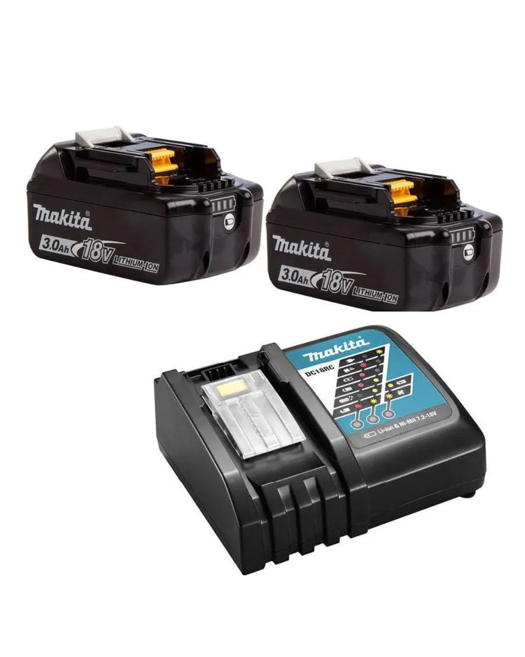 O Kit Carregador DC18RC + 2 Baterias 18V 3Ah BL1830B da Makita é a solução ideal para quem busca eficiência e praticidade em suas ferramentas elétricas. O carregador é bivolt, permitindo a recarga de baterias de 18V e 14.4V de íons de lítio, garantindo versatilidade no uso. As baterias BL1830B possuem uma capacidade de 3 Ah, proporcionando uma excelente autonomia para suas atividades. Com materiais de alta qualidade, essas baterias são resistentes a quedas e apresentam um indicador de nível de carga, facilitando o monitoramento. Além disso, não sofrem efeito memória e possuem uma taxa de auto descarga cinco vezes mais lenta, assegurando que você tenha sempre energia disponível quando precisar. Este kit é perfeito para quem utiliza ferramentas elétricas como furadeiras, oferecendo um desempenho superior e confiável.