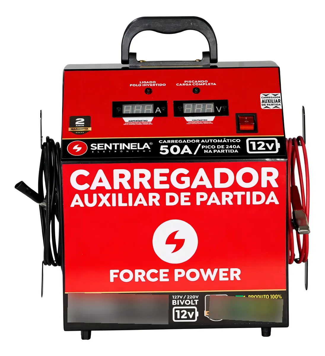 Os carregadores de bateria Sentinela são o diferencial na linha de carregador automotivo, adaptável a todo tipo de bateria e com flutuação com indicação por led, é a melhor escolha quando você precisa de um produto resistente e de fácil utilização. Aqui estão 10 benefícios que só os carregadores Sentinela oferecem: - Para uso doméstico ou profissional (carros, caminhões, tratores, ceifadeiras, torres de internet, etc) 1- Gabinete de aço carbono resistente 2- Proteção contra inversão de polaridade 3- Flutuação com indicação por led 4- Display digital com led alto brilho 5- Garante maior vida útil para as baterias 6- Adaptável a qualquer tipo de bateria 7- Não exige aterramento 8- Proteção ativa contra curto circuitos 9- Ventilação otimizada 10- Suporte técnico para todo o país Acompanhe o vídeo no anúncio para ver os benefícios do carregador Informações Técnicas: O que é carregador com Auxiliar de Partida? Se o seu veículo estiver sem carga e você necessitar dar partida, conecte o carregador e espere 5 minutos, após isso, você poderá dar partida normalmente, sem precisar esperar completar a carga. Alimentação: Luz / Bivolt 127/220V Corrente: 50A Tempo de carga: 6h a 24h Com amp. e voltímetro digital Recomendado à bateria de 55Ah a 200Ah Tipo carrinho pequeno com alça Dimensões: 30 x 27 x 19 cm Peso: 10,100gr