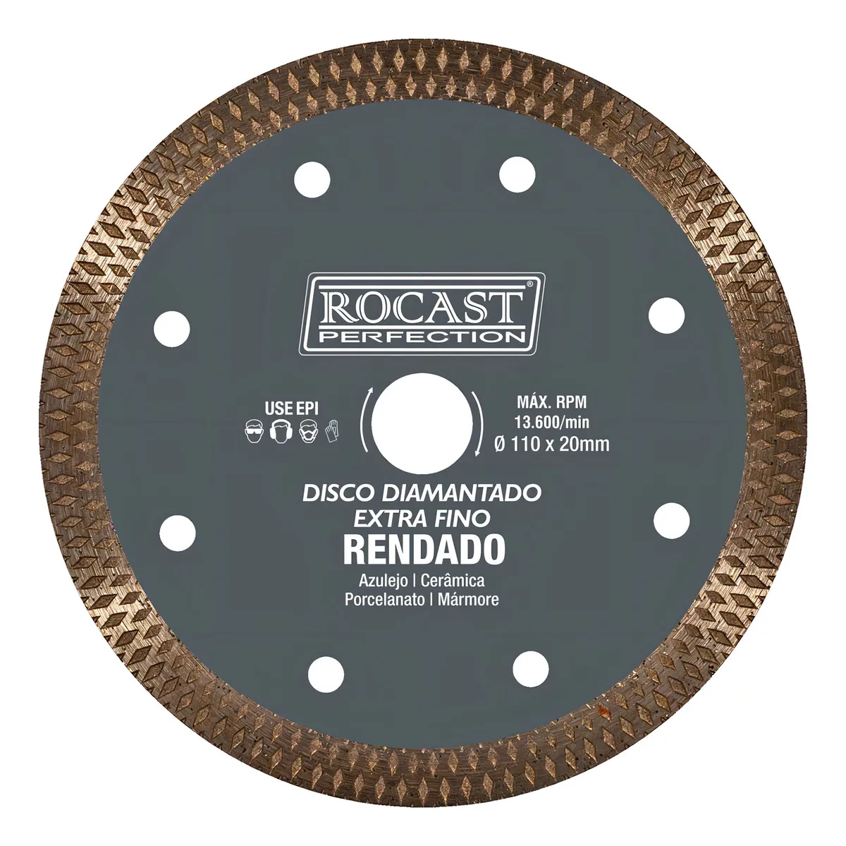 O Disco Diamantado Rendado Para Porcelanato - Extrafino 110 x 20mm (34,0017) - Rocast é uma ferramenta de corte altamente eficiente usada em esmerilhadeiras, serras circulares e outras máquinas de corte para materiais duros.