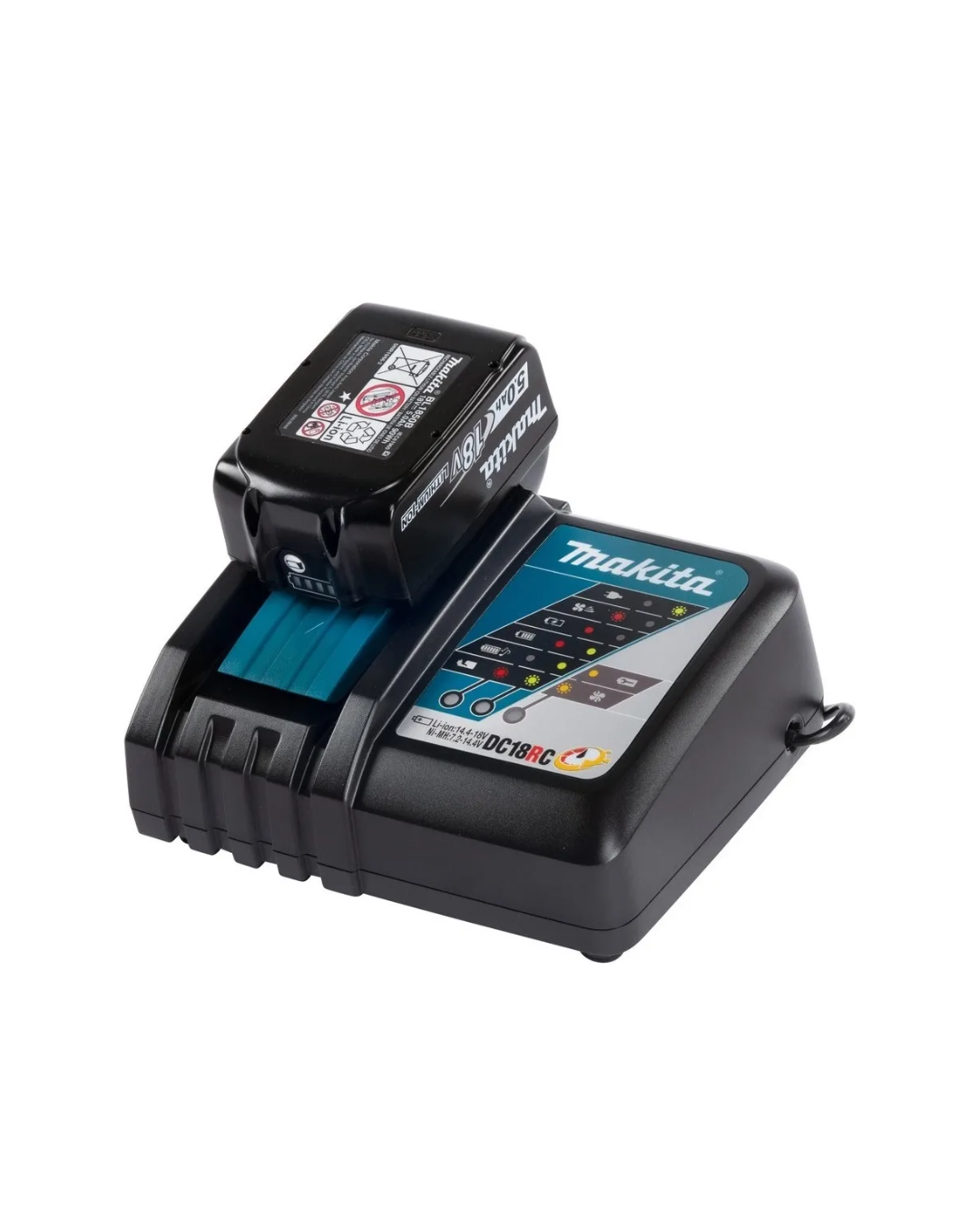 Kit Carregador 18V + Bateria 18V 5,0Ah Bateria 18V 5,0Ah BL1850B: Bateria de íons de lítio. Com indicador de nível de carga. Alta autonomia de trabalho. Sem efeito memória. Recarga rápida. Resistente à quedas. Mantém carga ociosa por longo período. Especificações: modelo: BL1850B Voltagem: 18V Amperagem: 5Ah Capacidade de energia: 90Wh Carregador 18V DC18RC Carregador rápido. Recarga em baterias de 18V e 14.4V de íons de lítio. Não é compatível com as baterias BL1813G, BL1413G, BL1811G e BL1411G. Tempo de recarga: - Bateria 18V 6.0 Ah: 55min - Baterias 18 e 14.4V 5.0 Ah: 45min - Baterias 18 e 14.4V 4.0 Ah: 36min - Baterias 18 e 14.4V 3.0 Ah: 22min - Baterias 18 e 14.4V 2.0 Ah: 18min - Baterias 18 e 14.4V 1.5 Ah: 15min - Baterias 18 e 14.4V 1.3 Ah: 15min Especificações: modelo: DC18RC Bivolt.