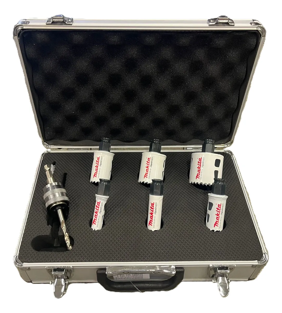Ezychange: troca fácil da serra copo e broca piloto Área composta por cobalto ampliada gerando maior durabilidade. Maior altura de corte, permite perfuração em madeiras mais espessas Duas aberturas laterais para remoção mais fácil do material cortado Especificações: 8 peças serras copos medidas: 35,44,54,76,95,114mm, adaptador com broca piloto HSSG, broca piloto HSS-Co Segmentos: Construção Civil / Marcenaria / Metal Mecânica / Aplicações: Inox / Madeira / Metais não ferrosos / Metal / Plástico / Sem garantia