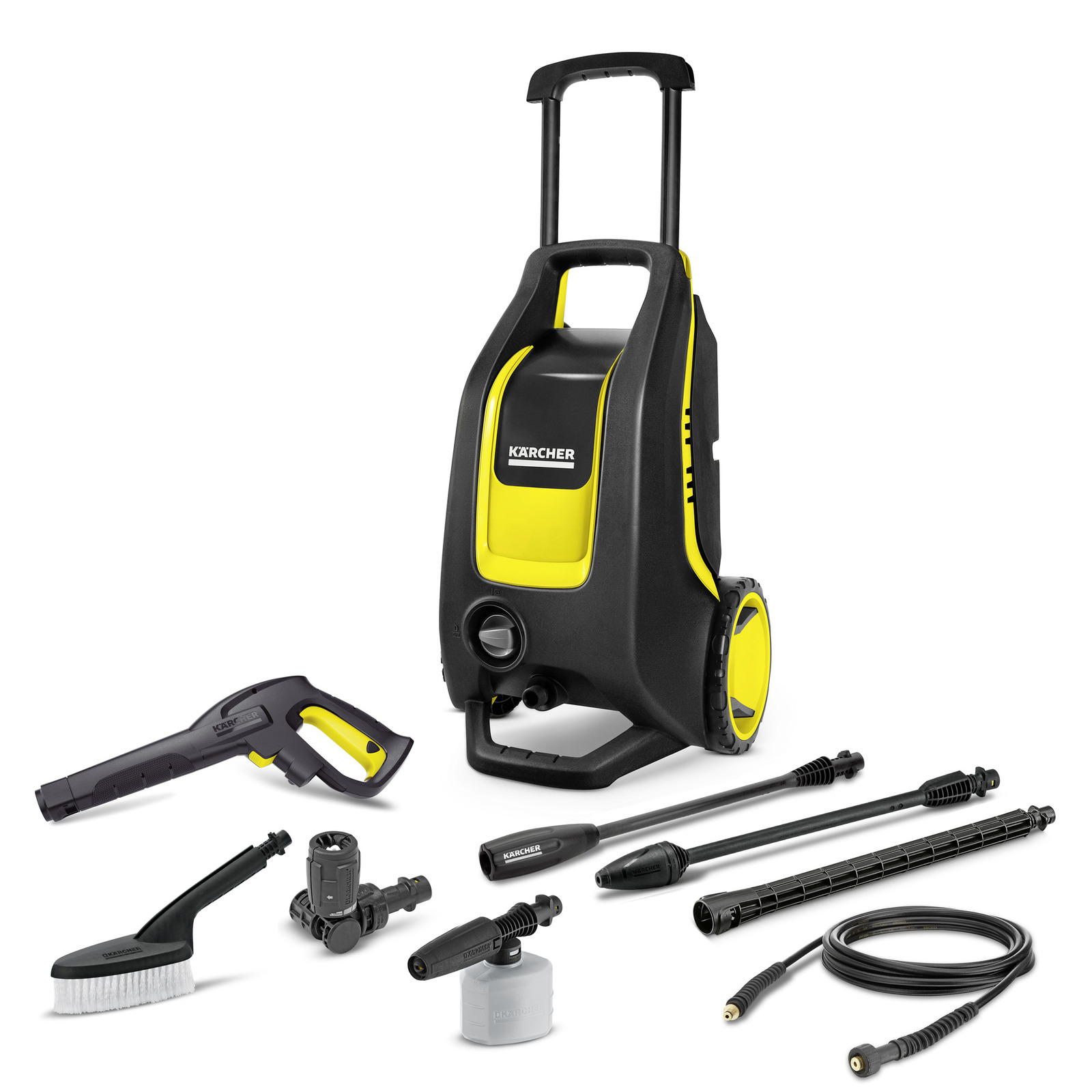 A máquina possui uma alça retrátil e rodas grandes que trazem maior mobilidade e facilidade no transporte, além de possuir o canhão de espuma exclusivo Kärcher, auto escova e bico articulado para limpeza de áreas de difícil acesso.