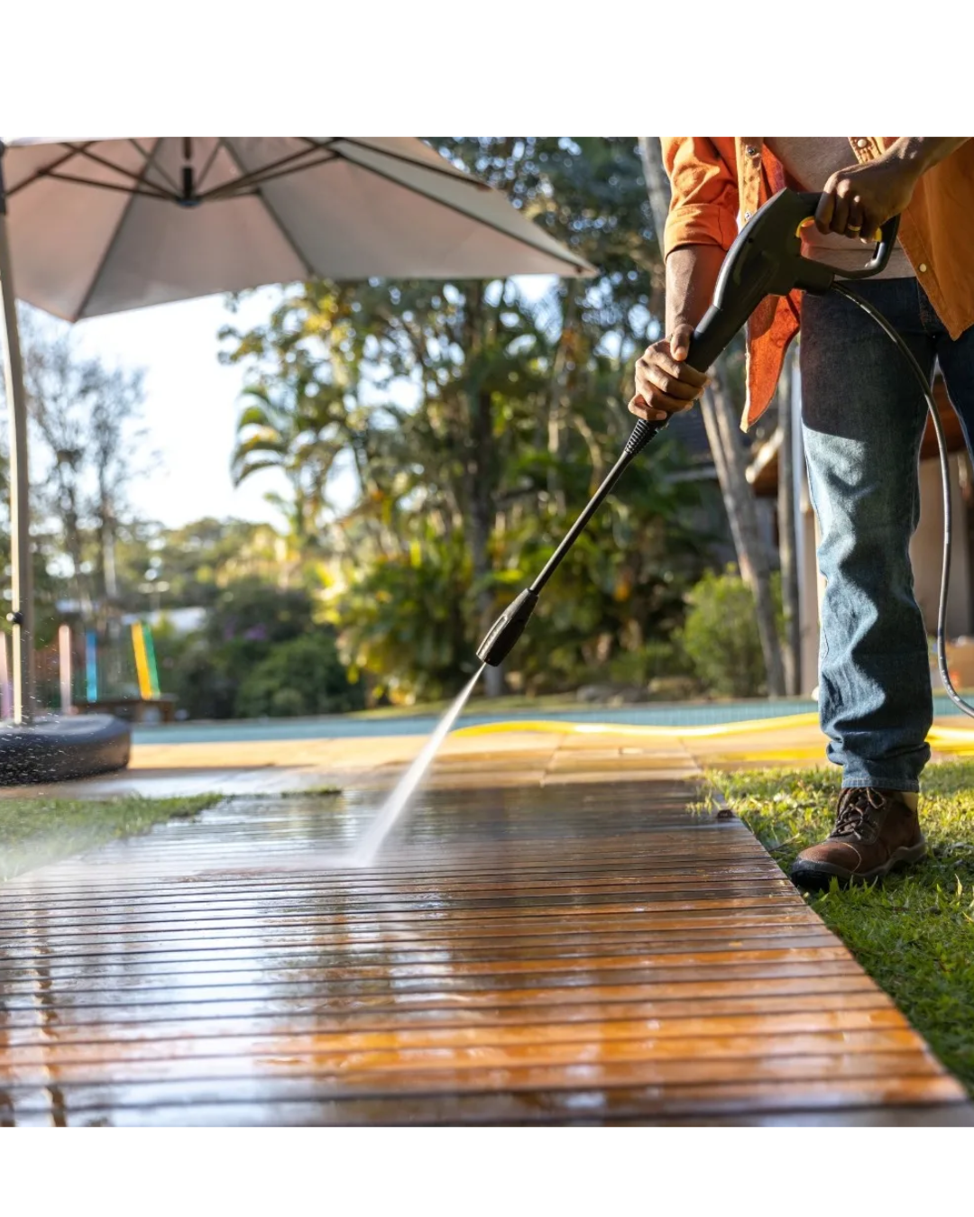 A lavadora de alta pressão K3 Force TURBO é ideal para as tarefas do dia-a-dia, proporcionando uma limpeza profunda e rápida com alta potência. Possui uma alça retrátil e rodas grandes que facilitam o transporte, além de possuir o canhão de espuma. A K3 Force TURBO possui uma exclusiva lança de jato turbo que remove as sujeiras mais difíceis. É perfeita para a limpeza de quintais, paredes, calçadas e muito mais, com economia de tempo, esforço e água se comparada com as mangueiras convencionais. Descrição de diferenciais: • Lança turbo rotativa: Jato reto e rotativo que aumenta a eficiência na limpeza removendo as sujeiras mais incrustadas. • Alça retrátil e rodas grandes: A única da categoria com alça retrátil, que permite que pessoas de todas as alturas transportem a máquina de forma confortável. As rodas maiores evitam que a lavadora trave em degraus e buracos durante o uso. • Canhão de espuma exclusivo Kärcher: Produz uma espuma densa a um nível quase profissional para uma limpeza mais profunda, acessório já vem de série na máquina. • Porta acessórios: Espaço reservado para guardar todos os acessórios em um só lugar, proporcionando uma limpeza mais organizada e facilitando a armazenagem dos itens. • Eficiência na limpeza: Ótima para limpezas mais complexas e remoção de sujeiras incrustadas. • Economia de água: Em comparação com uma mangueira de jardim, a lavadora garante a economia de água em até 80%. • Lavadora ergonômica: As lavadoras Kärcher são as mais ergonômicas do mercado, com design pensado para trazer conforto e praticidade durante o uso. • Compatibilidade de acessórios: Os acessórios exclusivos da Kärcher são compatíveis entre lavadoras da mesma categoria. • Plug and Play: Fácil de montar e desmontar o produto para uso ou armazenagem rápido, sem a necessidade da utilização de ferramentas. Acessórios inclusos para uma limpeza dinâmica: 1 lavadora de Alta Pressão K3 Force TURBO 1 lança de jato leque ideal para limpeza de rotina. O alto poder de arraste da sujeira cobre uma área maior, agilizando a operação. 1 lança de jato turbo rotativo de alta potência, ideal para sujeiras de difícil remoção em grandes áreas. 1 canhão de espuma Kärcher para aplicação de detergente de forma eficiente. 1 pistola G145. 1 mangueira de alta pressão de 4 metros. 1 engate rápido. 1 manual de instruções. PRESSÃO MÁX. PERMISSÍVEL (PSI/bar): 1815/ 125 VAZÃO MÁX. DE ÁGUA (L/h): 360 VAZÃO MÁX. DE DETERGENTE (L/h): 18 POTÊNCIA (W): 1500 FREQUÊNCIA (Hz): 1~50-60 PESO KG: 7 TIPO DE MOTOR: Universal TIPO DE BOMBA: Axial MATERIAL DO CABEÇOTE: N-Cor MATERIAL DOS PISTÕES: Aço Inoxidável RODAS: SIM MANGUEIRA (ENTRADA): Diâmetro (pol) 1/2 NÍVEL DE RUÍDO: 79 (dB(A))