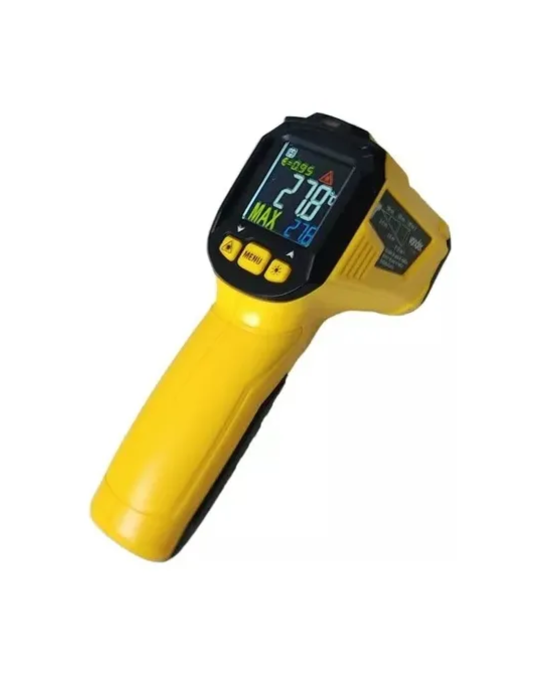Marca: Vonder Conteúdo da embalagem: 1 Termômetro Infravermelho Tiv 550 Vonder Acompanha: 2 pilhas (AAA alcalina) Possui visor de cristal líquido com ou sem opção de iluminação, desligamento automático após 30 segundos de inatividade, indicador de bateria fraca e funções de ajuste de alerta para temperatura máxima e temperatura mínima, através de LED indicador Indicado para medições de temperatura em geral, sem necessidade de encostar o termômetro no local ou no equipamento a ser medido. Utilizado para medições de temperatura de superfícies, permitindo rápida localização de problemas reduzindo o tempo de diagnóstico e trabalho. Quanto maior a distância do objeto em relação ao termômetro, maior será o diâmetro de abertura do termômetro infravermelho. O medidor possui uma resolução óptica de 12:1, ou seja, para 500 mm de distância o diâmetro de medição é de 42 mm. Para um resultado satisfatório, o objeto a ser medido deve ser pelo menos de 1,5 a 2 vezes maior que a amplitude do campo de medição. Não indicado para medição de temperatura corporal. Modelo: TIV 550 Classe do marcador laser do termômetro digital: Classe 2 Número de dígitos no display do termômetro digital: 4 dígitos Campo de visão: 12:1 Sistema de medida: Infravermelho Faixas de medição: -50°C ~ 550°C Conversão de unidades: °C / °F Resolução do termômetro digital: 0,1°C / 0,1°F Precisão: - 50°C ~ 0°C: ±3°C; 0°C ~ 550°C: ±1,5% + 2°C Tempo de resposta: < 500 ms Repetibilidade: ±0,5% ~ ±1°C Emissividade: Ajustável entre 0,10 ~ 1,00 Função (máxima/mínima): Máxima Iluminação de fundo: Sim Auto desligamento: Sim, após 30 segundos de inatividade Temperatura ideal do ambiente de trabalho: 0ºC ~ 40ºC Umidade relativa do ar ideal para trabalho: 10% - 95% Alimentação: 2 Pilhas (AAA - alcalinas) Dimensões (A x L x C): 90 mm x 45 mm x 145 mm Massa aproximada (peso): 0,135 kg
